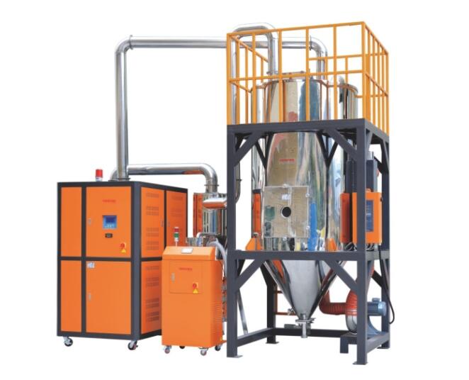 目前除濕干燥一般用于一些吸濕性比較強的工程塑料,如PA、PET、PC、PBT等。除濕干燥機是經過除濕的低露點空氣,送入一個或幾個標準干燥料斗里,以提高干燥效率并縮短干燥時間。
